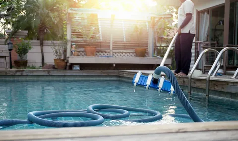Most residential pools need weekly service during swimming season to maintain clean water and proper chemical balance. Bi-weekly service works for lightly-used pools or off-season months, but weekly visits are recommended for pools with daily use or heavy tree coverage.